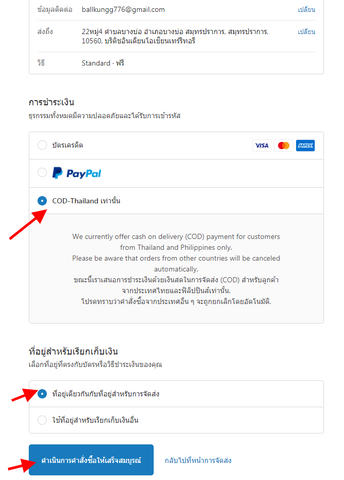 ในขั้นตอนนี้หากคุณต้องการชำระเงินเมื่อคุณได้รับสินค้าคุณสามารถเลือกการชำระเงิน COD Thailand